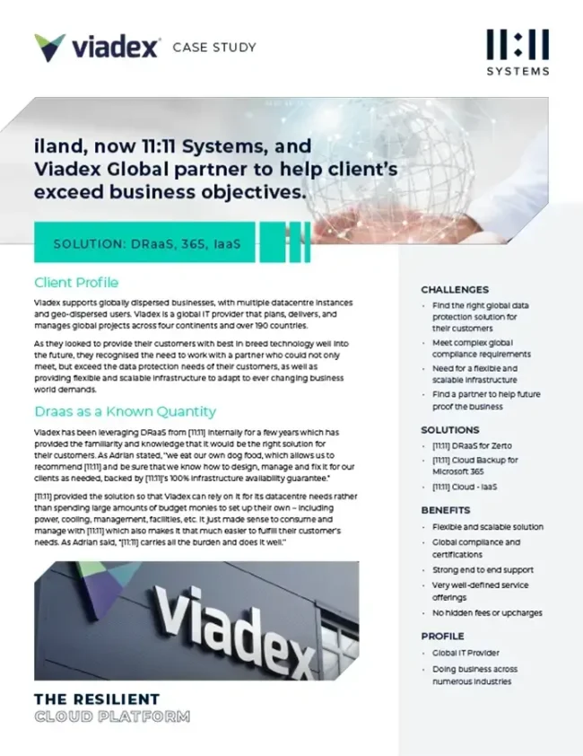 iland, now 11:11 Systems, and Viadex partner to help client’s exceed business objectives. By Jack BaileyNovember 24, 2020